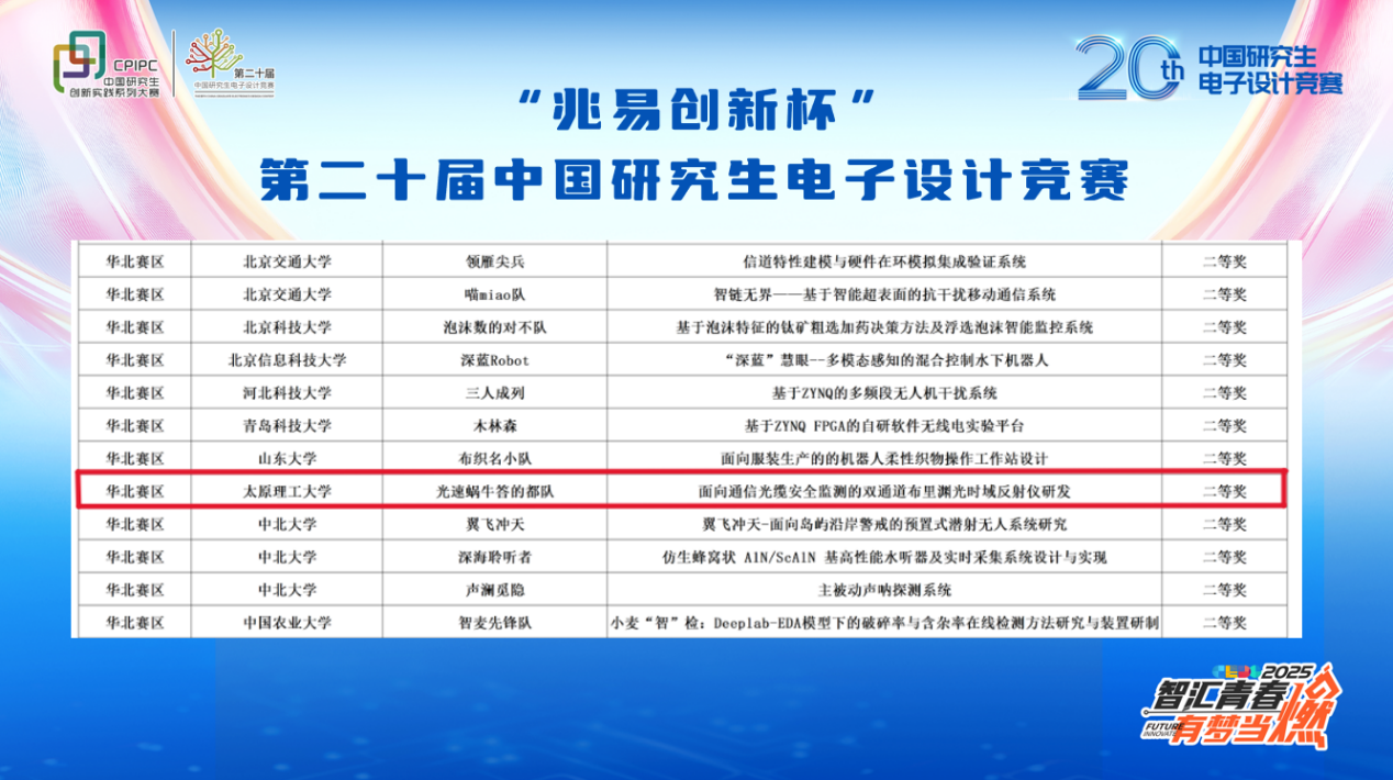 2025年8月14至17日,由教育部学位与研究生教育发展中心指导,中国学位与研究生教育学会、中国科协青少年科技中心、中国电子学会共同主办的“兆易创新杯”第二十届中国研究生电子设计竞赛全国总决赛在深圳信息职业技术大学圆满落幕,经过分赛区初赛、复赛和总决赛的层层角逐,suncitygroup太阳新城斩获全国二等奖1项。